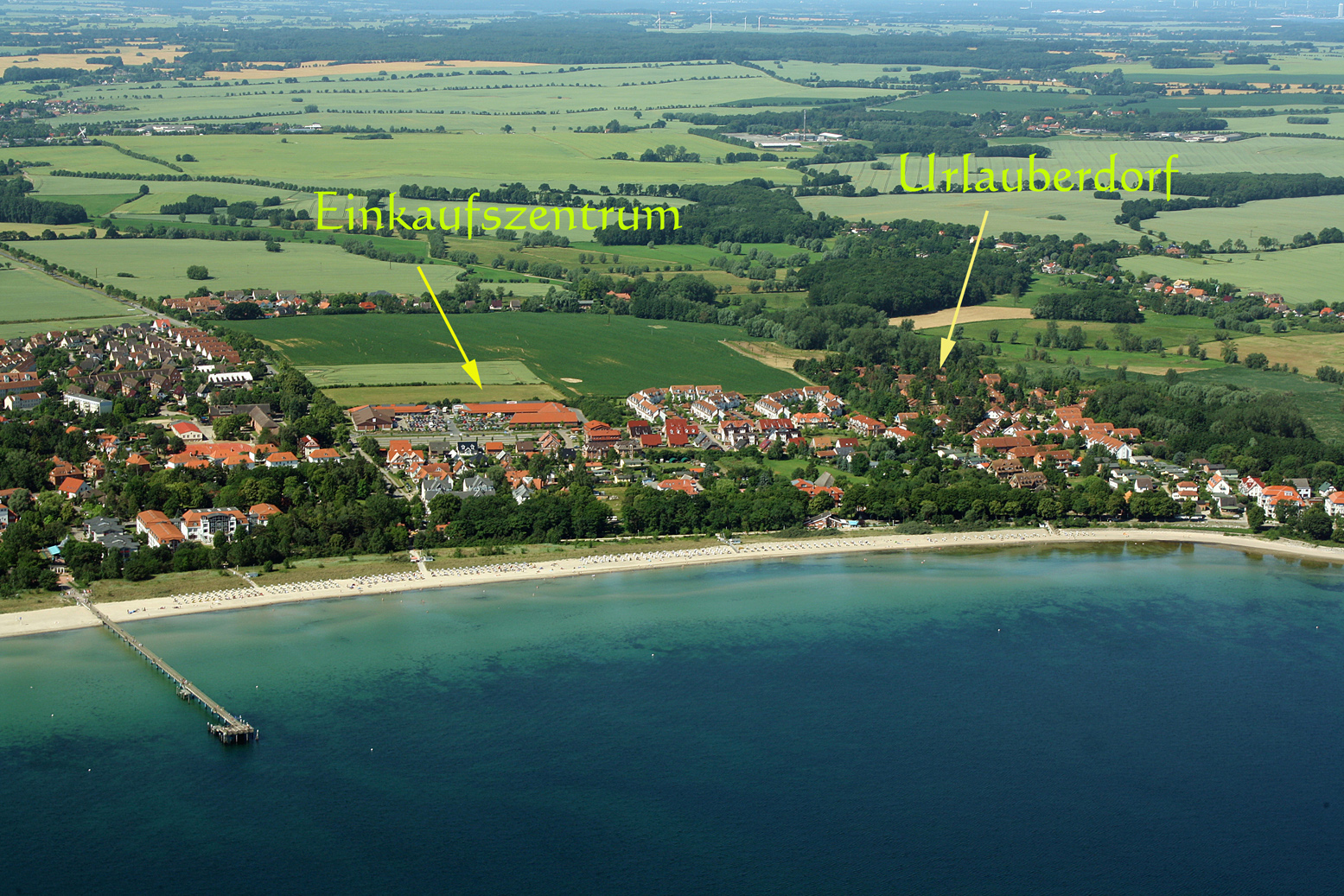 Das Urlauberdorf liegt einerseits am Naturschutzgebiet in ruhiger Umgebung und andererseits in Strandnähe und in der Nähe zum nächsten Einkaufszentrum. Alter Baumbestand und großzügige Rasenflächen im Urlauberdorf sorgen für einen angenehmen und erholsamen Aufenthalt. In der großflächigen Anlage mit einem nicht störenden Spiel- und Sportplatz für Kinder und Jugendliche fühlen sich auch Familien mit Kindern sehr wohl.